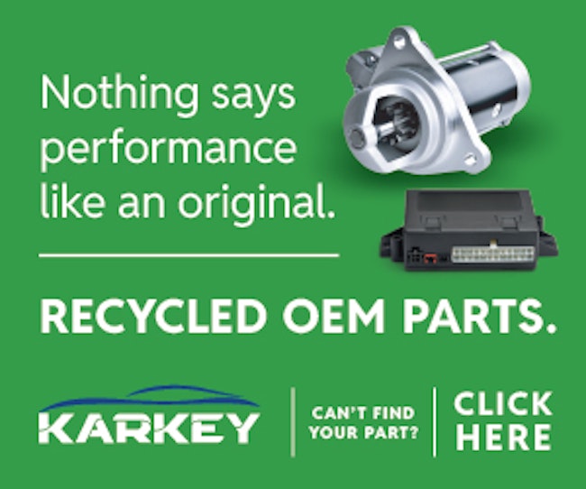 | | | | Sponsored | | | | KarKey recycled OEM parts come with a 100% guarantee–100% of the time. Plus, every part is a VIN-driven match, and is checked for form, fit and function before shipping. This gives your customers the reassurance they want. To get started, go to KarKeyUSA.com, click “Request account” and fill out the form. This will give you access to the recycled OEM parts you need for all makes and models, 24/7. |