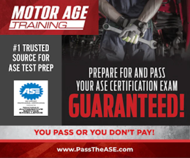 | | | | Sponsored | | | | Motor Age Training gives you the tools to succeed with ASE certification. From study guides and practice tests to video training, our resources are designed by ASE Master Technicians to cover today’s most relevant technologies and repair strategies. Build your confidence, sharpen your skills, and get exam ready. |